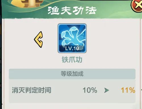 PS:铁爪功的属性就是跟渔网的持续时间有关。