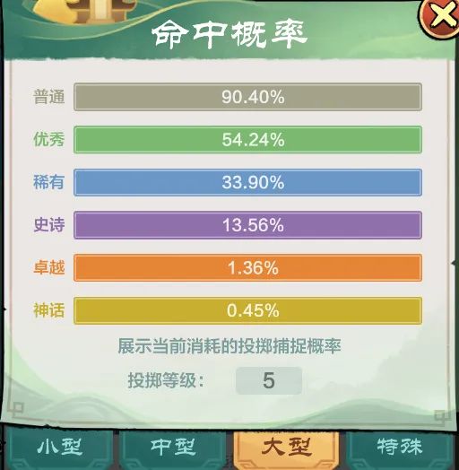 注意:功法抓紫鱼的概率是100%,红鱼是10%左右,金鱼是4%左右(视渔夫功法等级而浮动)。