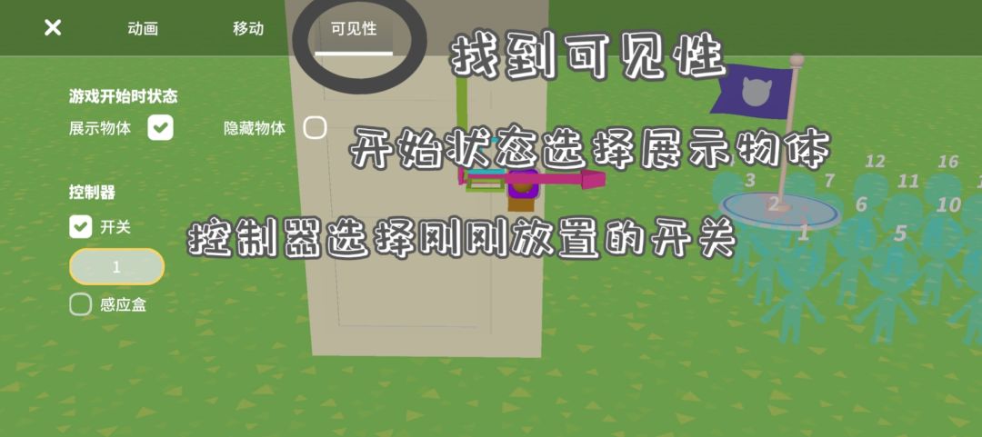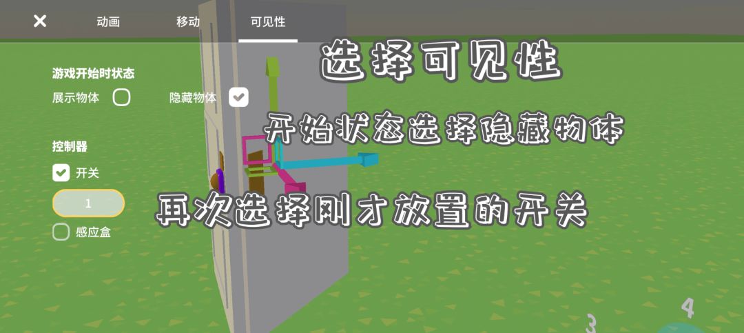 3.第二个门(开门状态)可见性设置隐藏物体,再次连接刚刚放置的开关