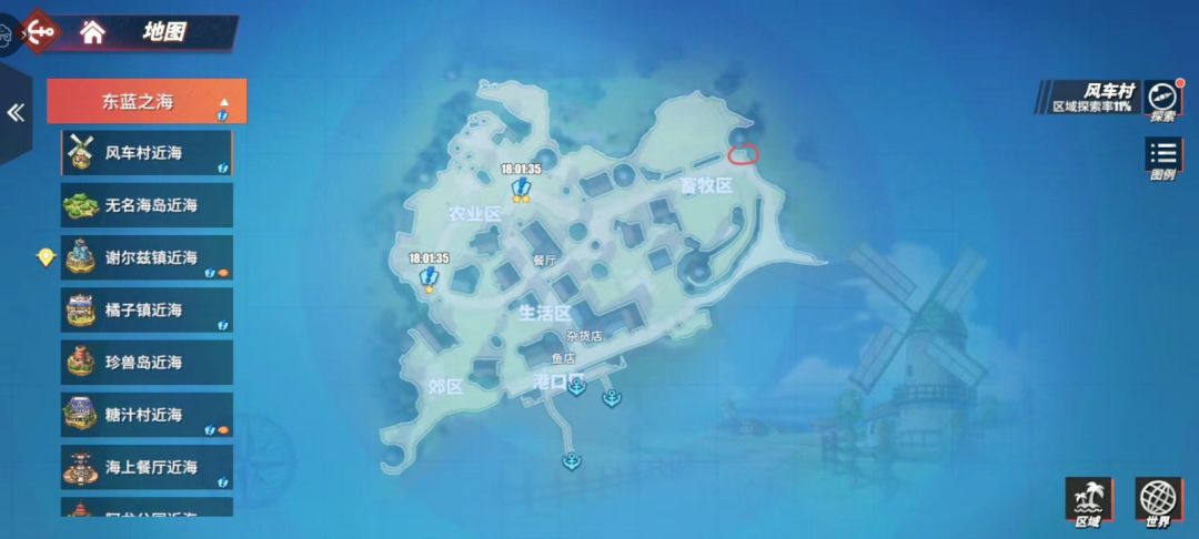 - 在满是风车的港边小镇中,最东方的风车脚下:位于风车村右上角。