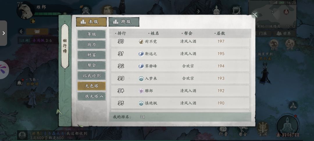 目前192层,我排名上下全是比我战力高很多的,不排除他们懒得打。
