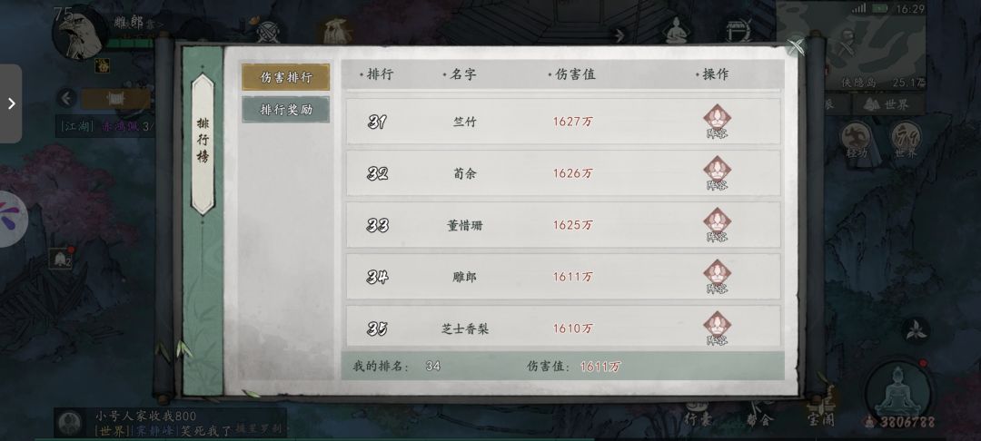 打桩弱于连击剑,结算时排名在40-50名。