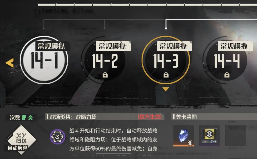 然后是几个全新开启的玩法,包括新的剧情关卡,第十二章的精英关卡,新的前线试炼、武装讨伐副本等,不过最有趣的是这次的这次还开了新的芯片本,目前只能看到14-3芯片本的信息。