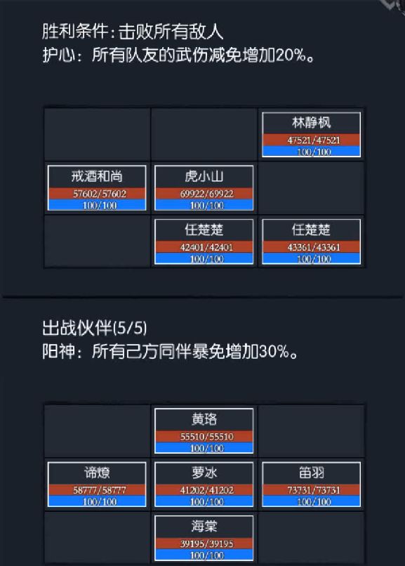 第九层第一战第一阵,敌方2盈盈+1虎+和尚,无脑4保1孤寡位的小林子,对于这种4保1还是好打的,针对对面输出强劲,上两个续航奶,前排肉盾,萝冰带队,主角输出完事了。