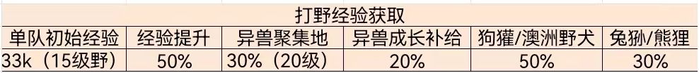 原理:一次打野战斗增加队伍3只异兽经验,狩猎和经验积分同时增加。带上增加经验的异兽,可大幅度提升获取积分