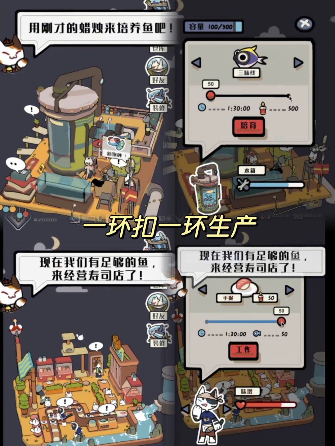 🌼这里可以结识猫咪朋友,触发各种事件,培育神秘鱼苗,解锁鱼类图临,各类店铺,自由布置,打造独一无二的风格,360度旋转欣赏~