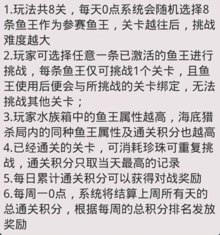 1.参赛鱼王需要已解锁,如果未解锁则无法选择参赛;