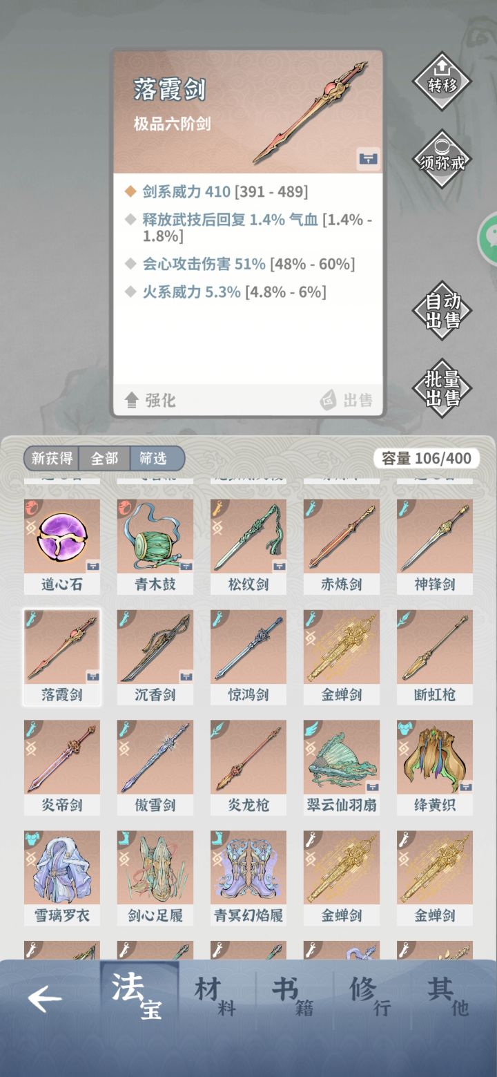 步骤一(图一):两个万用石造装备自动出售凡品(凡品可塑程度更高但升极品用的龙脉石难求量力而行),留极品货做胚。(0.1概率左右出货率)
