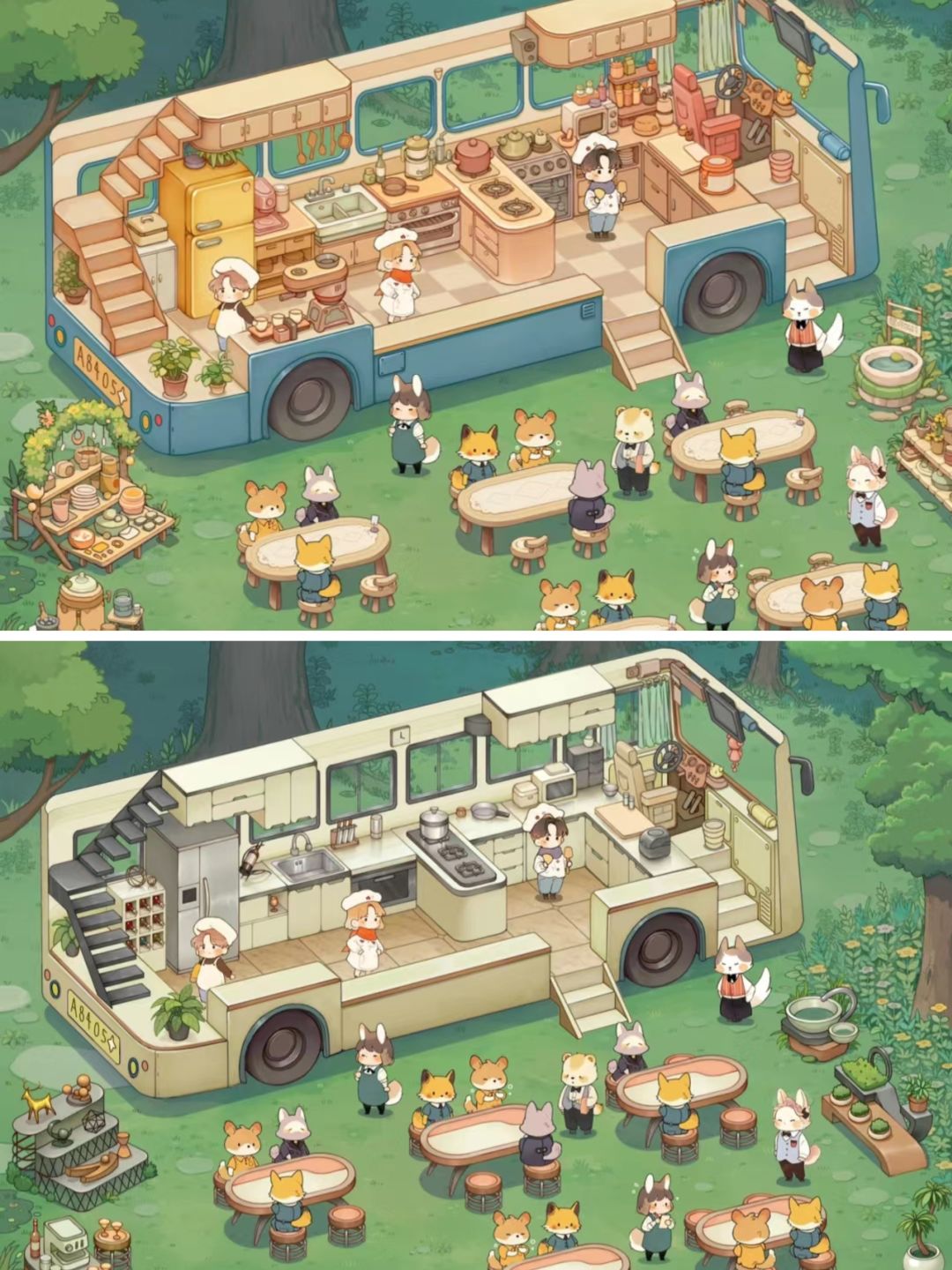 🔅烧烤摊、温泉、花园、营地,收集各种装修风格,解锁菜谱,招募伙伴,diy换装,旅行冒险!