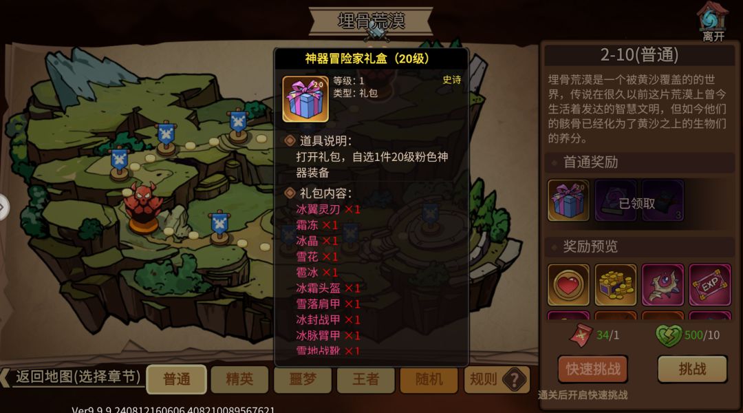 通关冒险副本绿意平原所有章节,都可以获得开荒橙装自选礼包,前期快速全身橙装度过新手期,另外第二章节还能领取20级自选粉装,前期输出不用愁,强化+10一刀流!