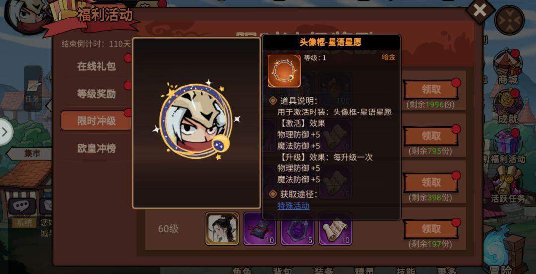上文活动送出大量体力与快速挑战卷,记得提升等级哦~开服限时冲级奖励丰富实在:
