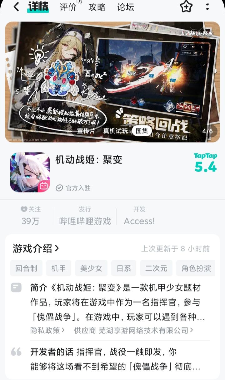 8/13号中午,B站二游《机动战姬:聚变》宣布: