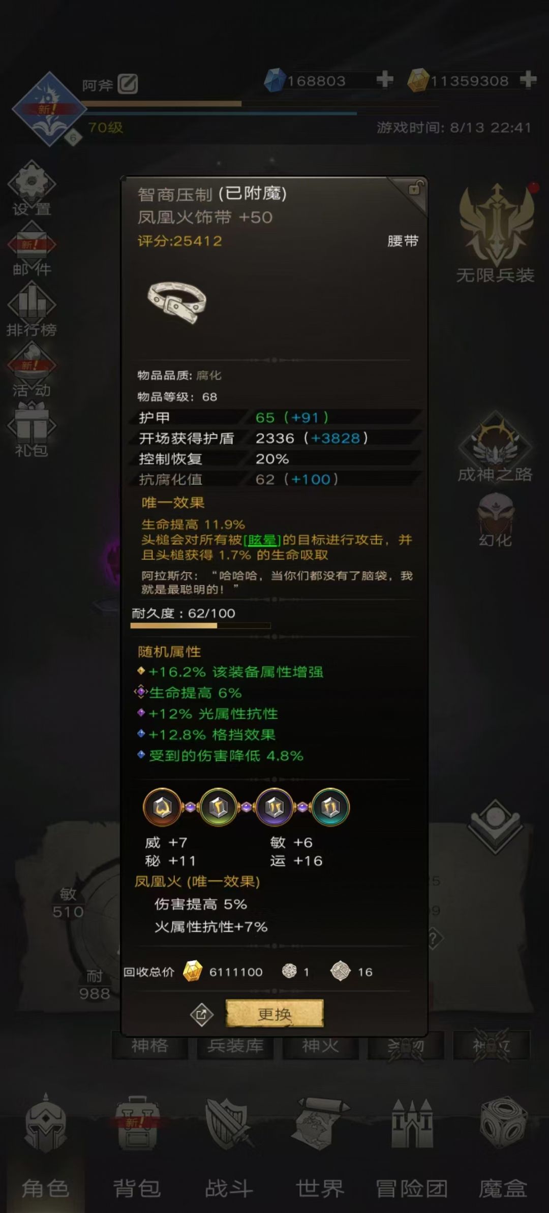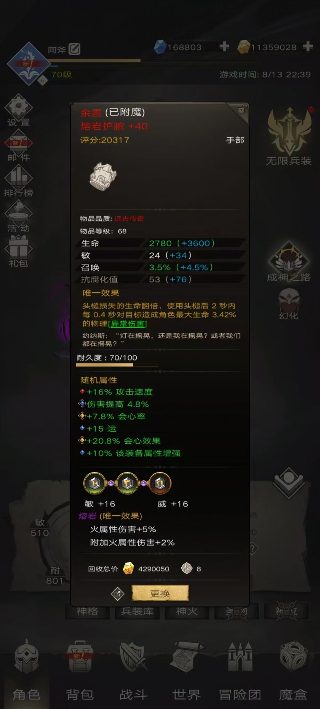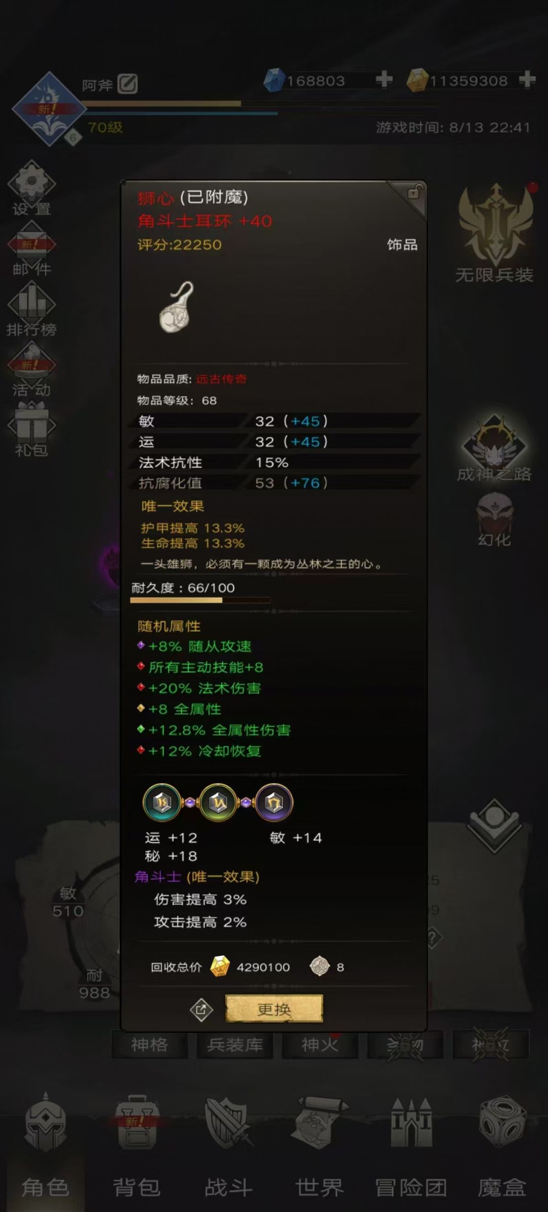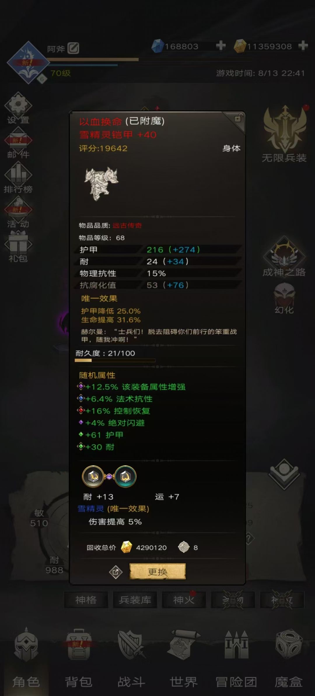 阿斧也是用这套装备打到了通天塔 66层