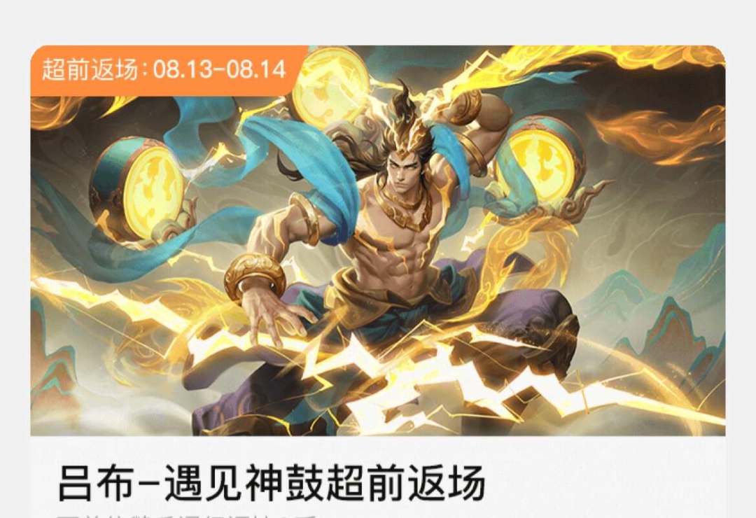 最近王者荣耀又返场了一款限定皮肤,这款皮肤就是吕布的敦煌联动皮肤遇见神鼓。这款皮肤的返场估计很多玩家都还不知道,因为游戏商城确实没有上线这款皮肤。不过在鹅毛市集中,这款皮肤下迎来了超前返场,返场时间为8月13号到8月14号这两天。没找到这款皮肤购买渠道的玩家也别着急,因为超前返场结束之后,这款皮肤都会在游戏商城迎来返场。