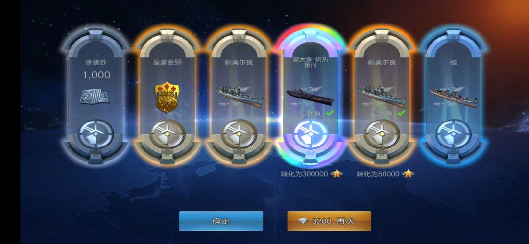 很可惜,箱箱出彩,就是没有BOSS船,也没一个我想要的 。干脆换个俾斯麦改,心心念念七年了都抽不到,这下彩船全齐了。以后的彩箱子除了BOSS没有需要的了。