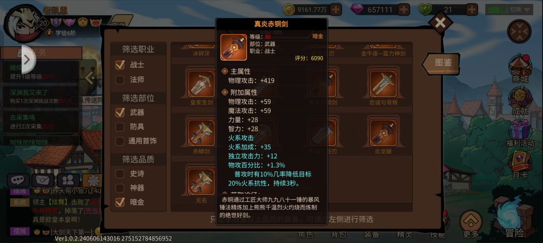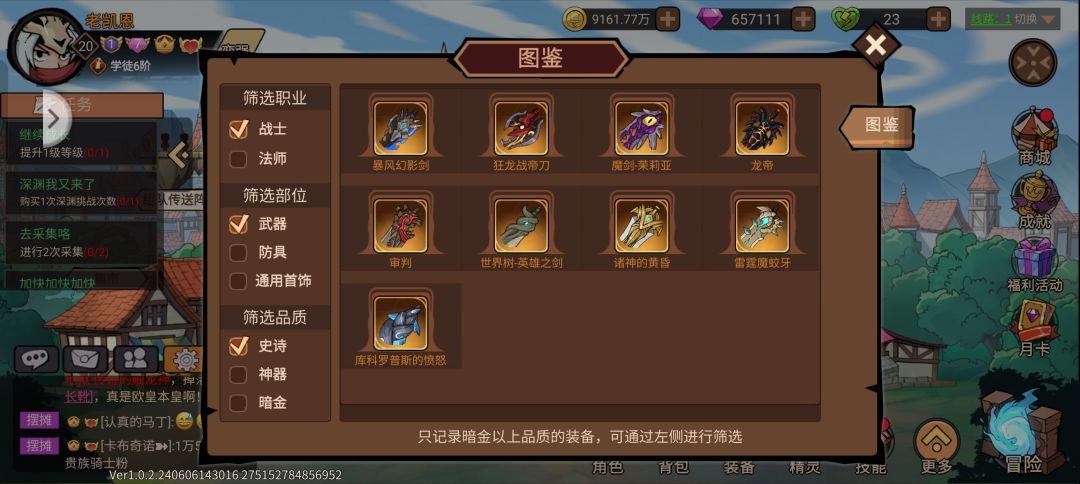 20级可以选择穿暗金装备,价格比粉套便宜,如果你有首充武器,直接可以用到30级或者40级再更换武器。