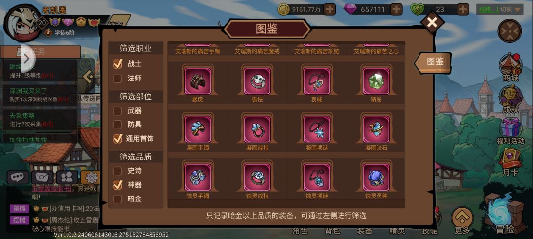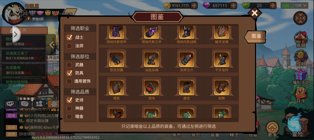 暗金流派可以在这里就换装了,后续的暗金装备实用性非常低,建议最低使用粉套。