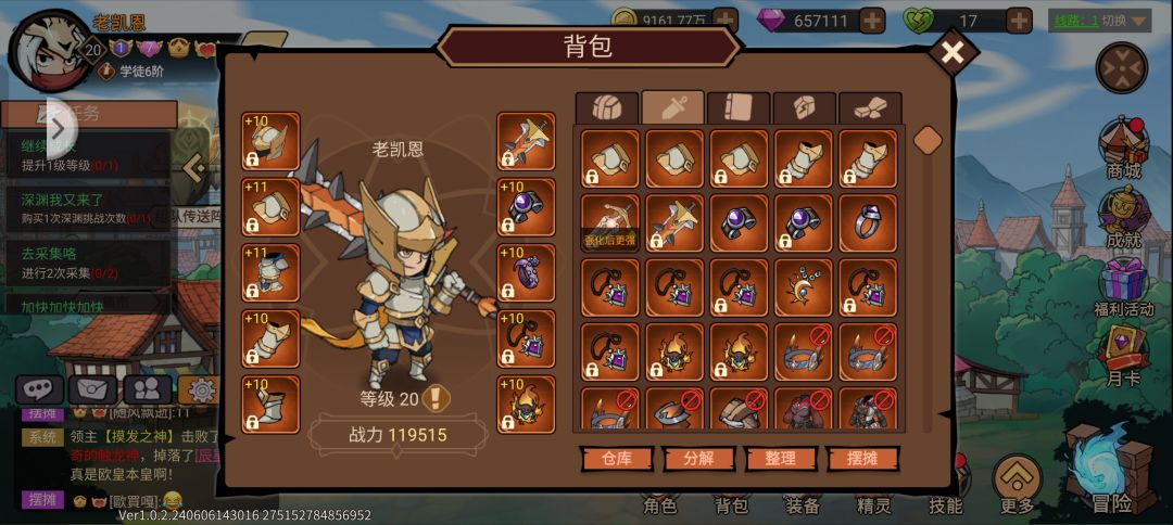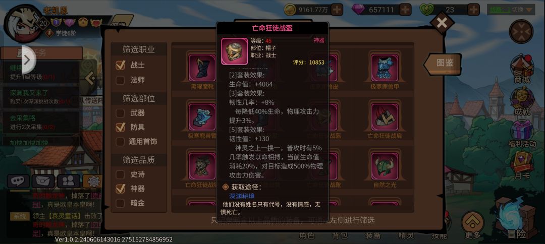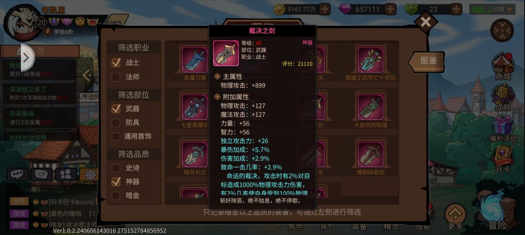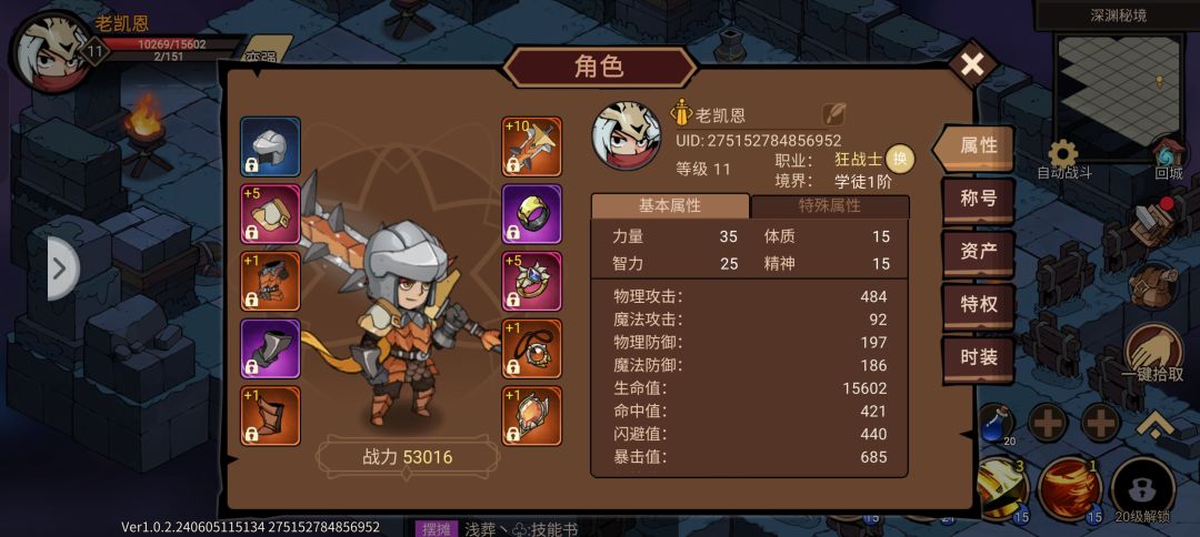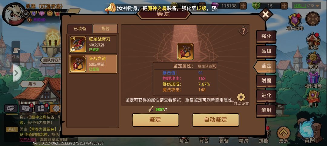 45级来到了魔神装备阶段,获得的装备有几率带魔神封印,解开可以获得随机属性词条,没有也没关系普通的照样能用。