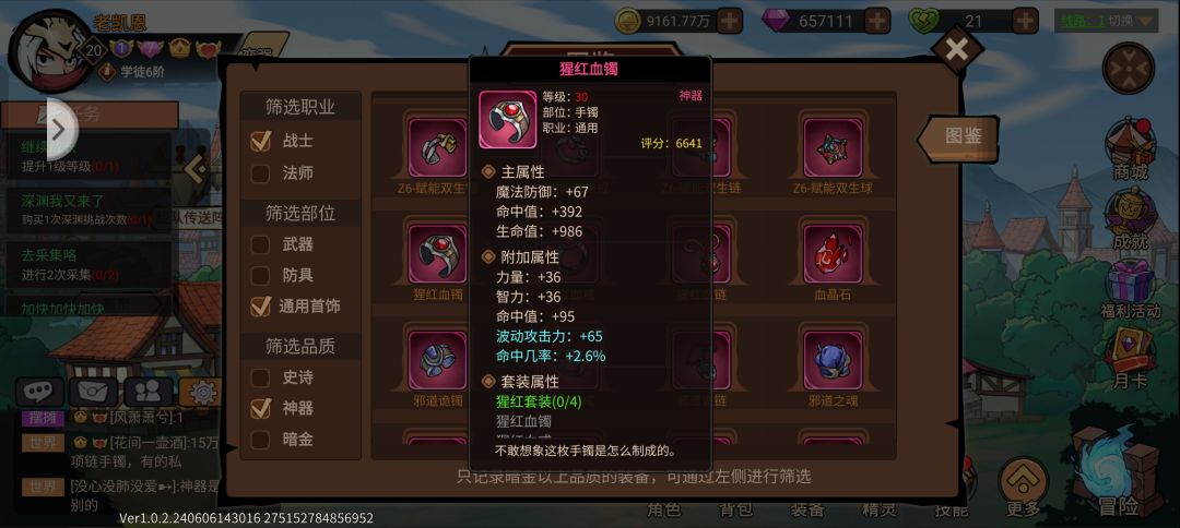 首饰最好用猩红套,不必过渡打造,40级首饰即将换套。
