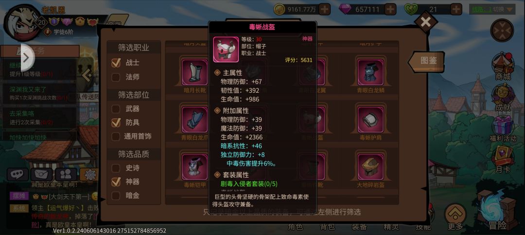 30毒需要换套ss,防具推荐巨人套,武器优先库科罗首,饰两套都可以用,择优搭配。