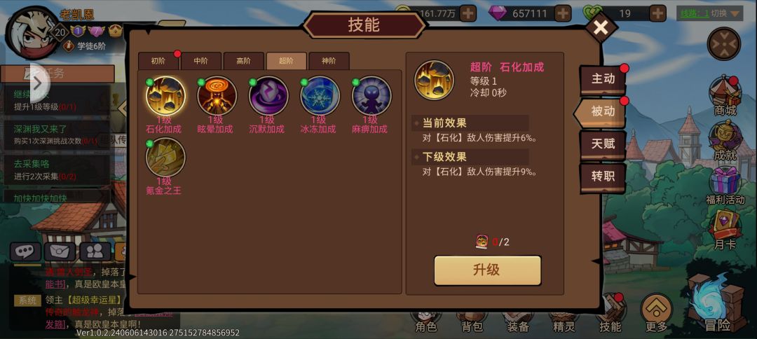 超阶选择石化和眩晕,建议学习两个增伤,不然就一个眩晕不够看,尤其是石化和沉默,和其他超阶被动比起来,价格真是繁星比皓月,眩晕可以通过无系触发,石化可以通过装备的选择,或者鉴定石化词条的效果触发。