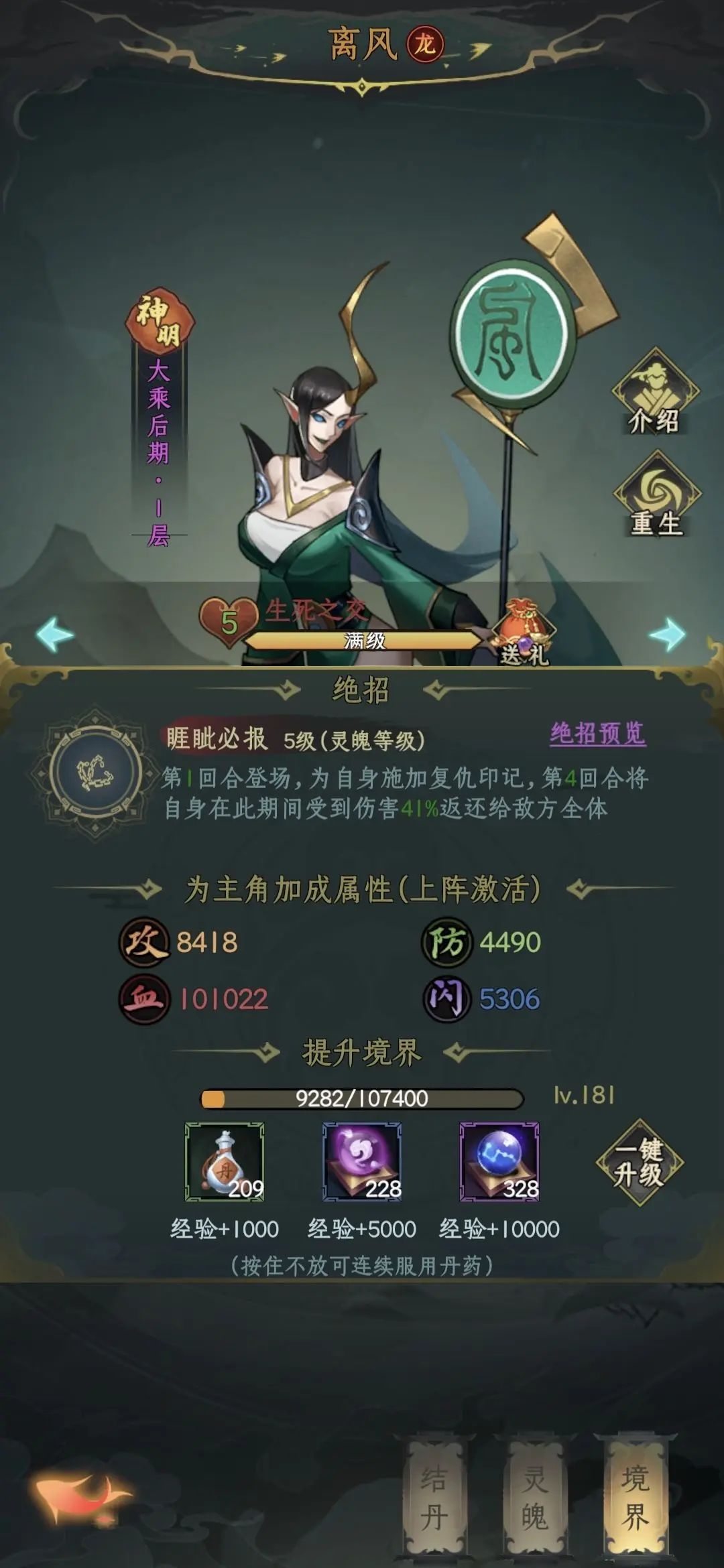 第六推荐(冰帝)(晏龙)(精卫)(羲和)(大道天师)控制伙伴 升级到3星就可以,主要是前期过渡和PK活动的战斗,需要控制伙伴来破解对方的招式,需要用哪一个伙伴就看你们自己的选择。目前还能用的神明伙伴就在这里了。