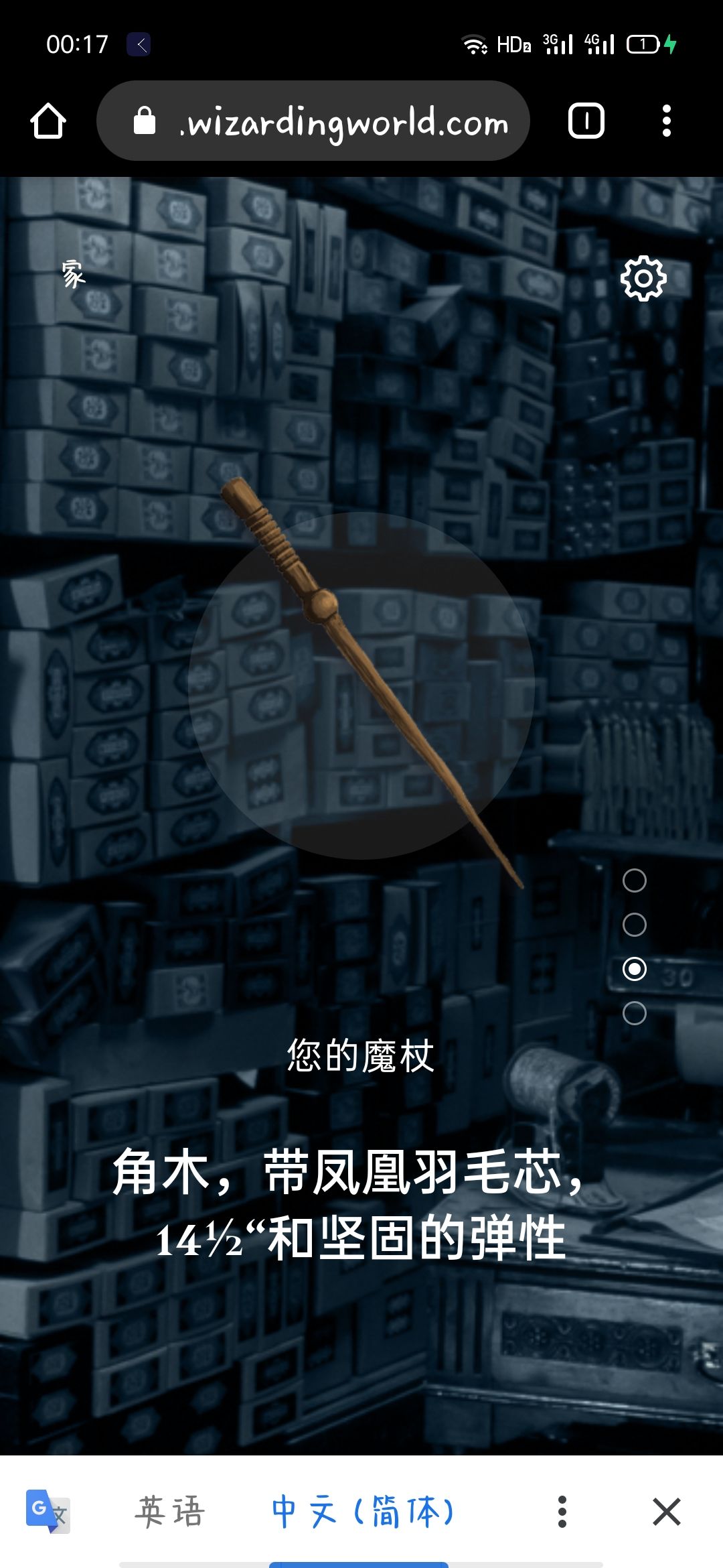 魔杖:角木,凤凰羽芯,14又1/2长度,坚固有弹性