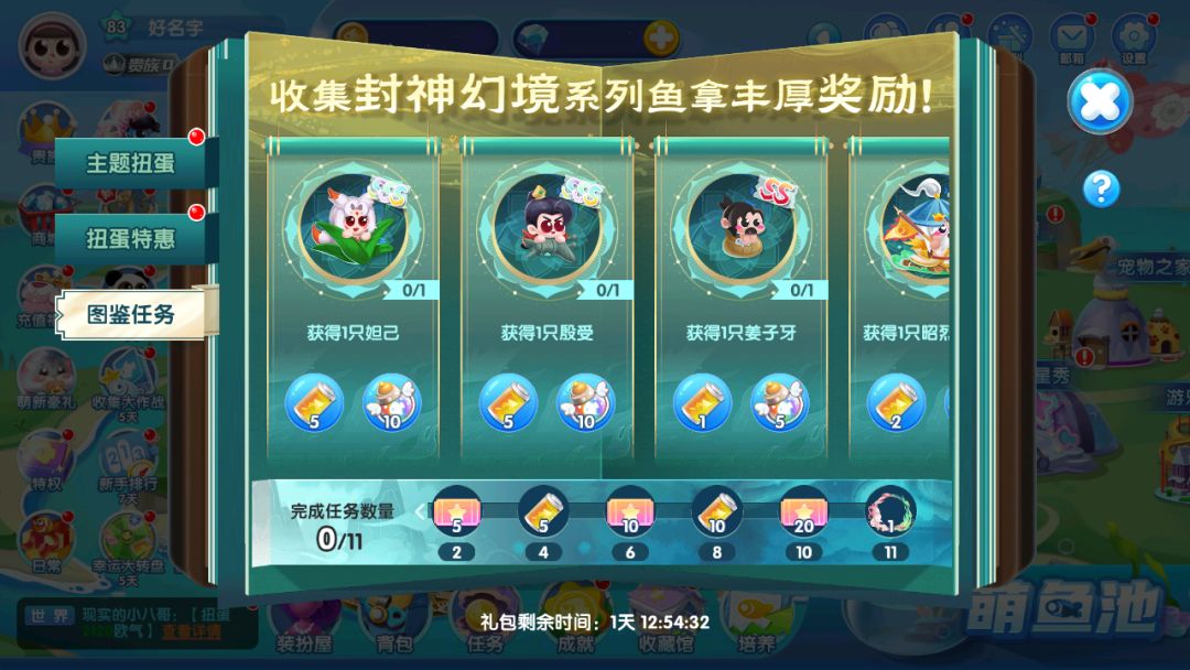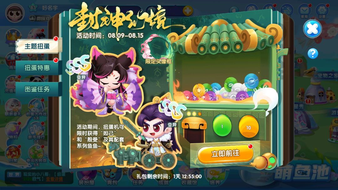 活动期间可在扭蛋机-封神幻境中限时获得“妲己”和“殷受”及配套系列鱼鱼~