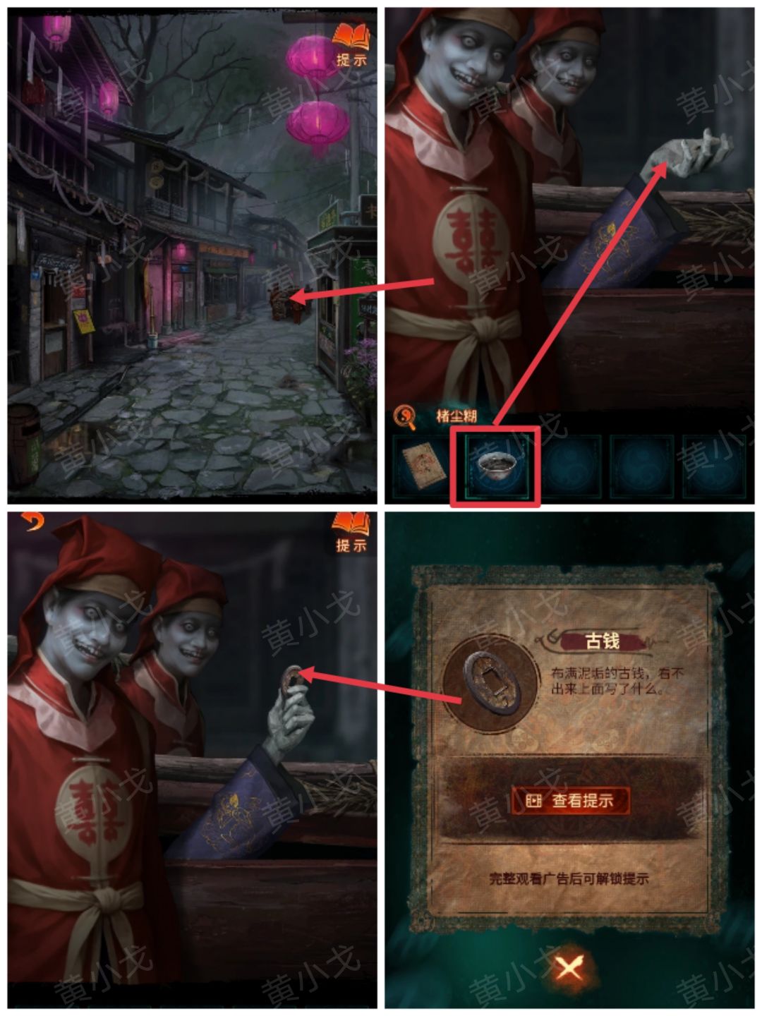 5点击迎亲队伍,拿【楮尘糊】给伸出的手,获得【古钱】