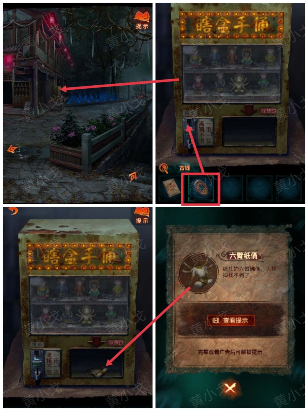8.点击桌子上的瞎盒手佣箱,投入【古钱】;获得【六臂纸佣】