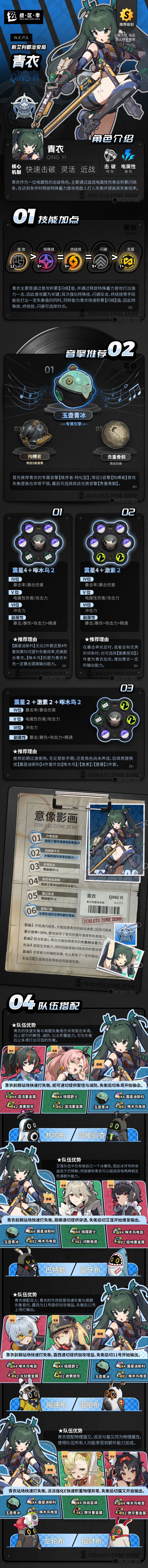 先让我们来看看下面的一图流攻略吧,一图流介绍了青衣的技能优先级、音擎推荐、驱动盘推荐、关键影画以及队伍搭配五大版块,希望对想入手的小伙伴有所帮助。