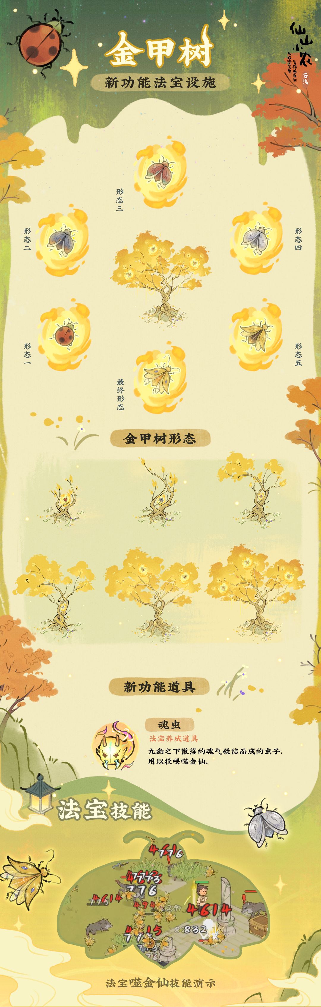 5、金甲树强化到20/40/60/80/100级时,需要先进阶才可以继续强化,每次进阶提高金甲树20级等级上限,并强化噬金仙的法宝属性。