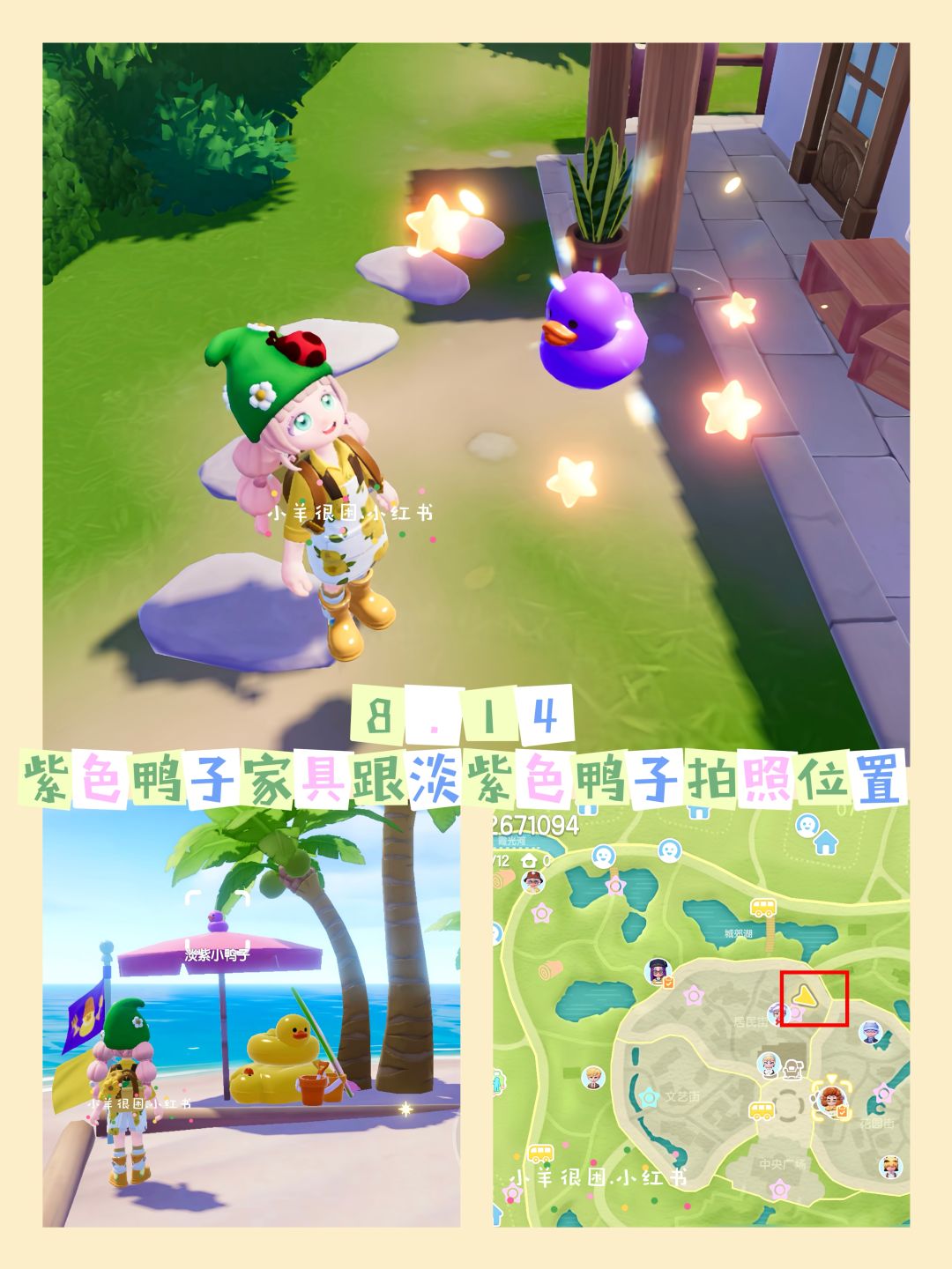8.14淡紫色鸭子拍照位置在紫色太阳伞上面