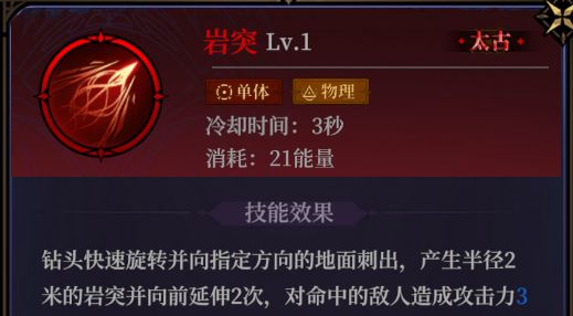 岩突:物理系的小范围伤害法术,简单直接且爆炸,升阶后不仅额外增加小范围爆炸伤害,还能额外对四周命中敌人造成伤害,而且冷却时间很短,置于心得槽只有2秒冷却时间,几乎可以做到无缝衔接。