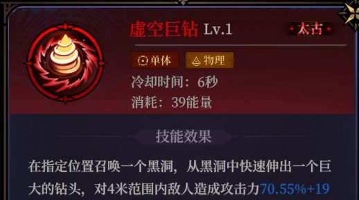 虚空巨钻:物理系的小范围伤害法术,升阶后不仅能额外造成持续性小范围伤害,还能增加给敌人上debuff的能力,高阶还会扩展伤害方向,而且冷却时间很短。