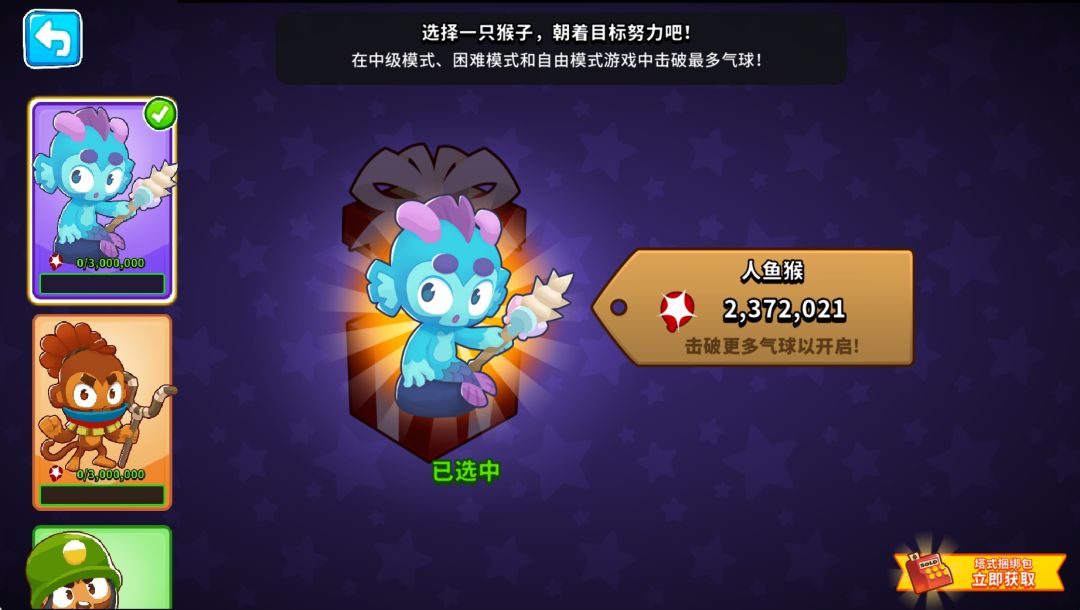 机枪猴、野兽之主、人鱼猴等非等级自动解锁的猴塔,都将收录进新系统,由玩家自主选择解锁顺序来获取;