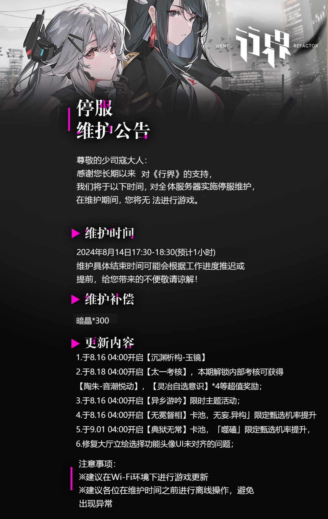 【公告】8月14日维护公告