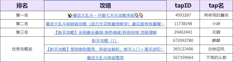 发布符合发帖格式与主题的攻略帖至《童话大乱斗》论坛-【新手攻略】板块中,并将【帖子标题+链接】回复在本活动帖下方评论区。(发布帖子时,标题需为【新手攻略】+标题)