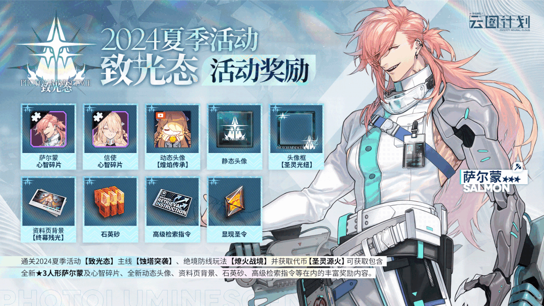 参与活动可获取全新⭐3人形萨尔蒙、萨尔蒙心智碎片(可直升⭐5)、信使心智碎片、高级检索指令、全新动态头像、头像框&资料页背景等在内的丰富奖励~