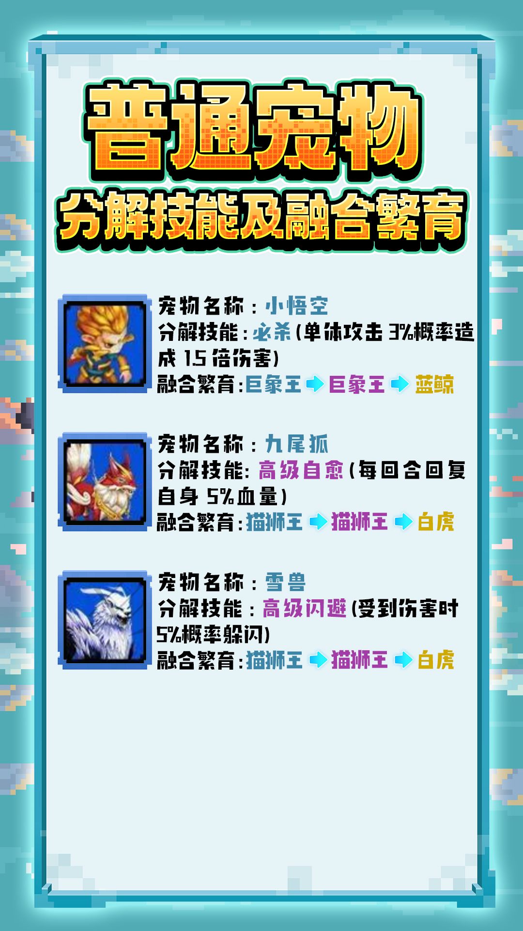 ,所以今天来给大家分享一期新手能接触到的普通宠物的分解技能及融合繁育。
