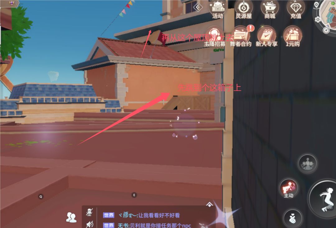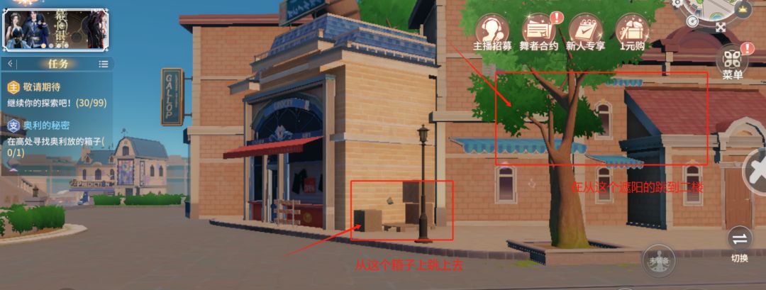 从舞者协会后面雕塑旁边的箱子上跳上楼