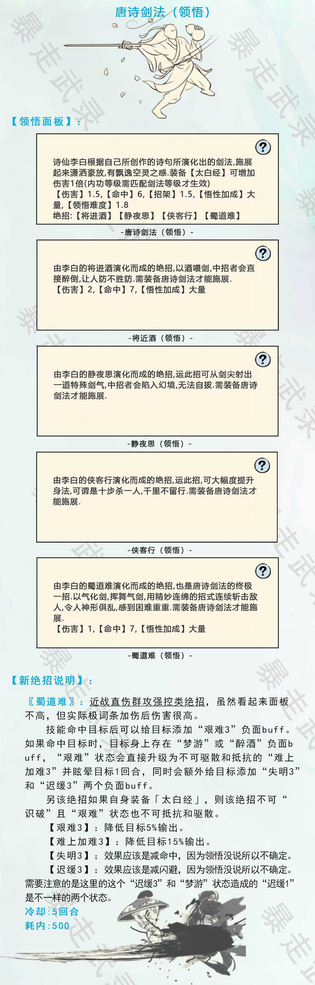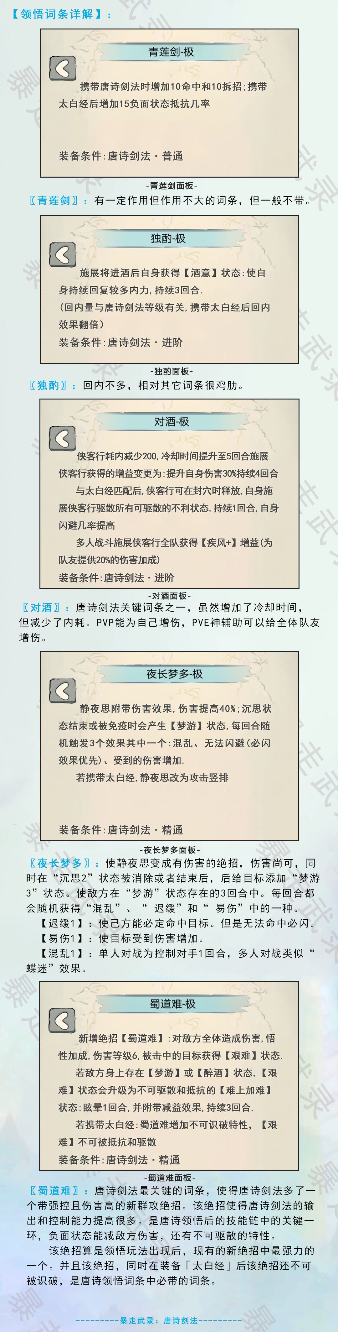简析:唐诗剑法标准搭配,也是最佳搭配,表现中规中矩。