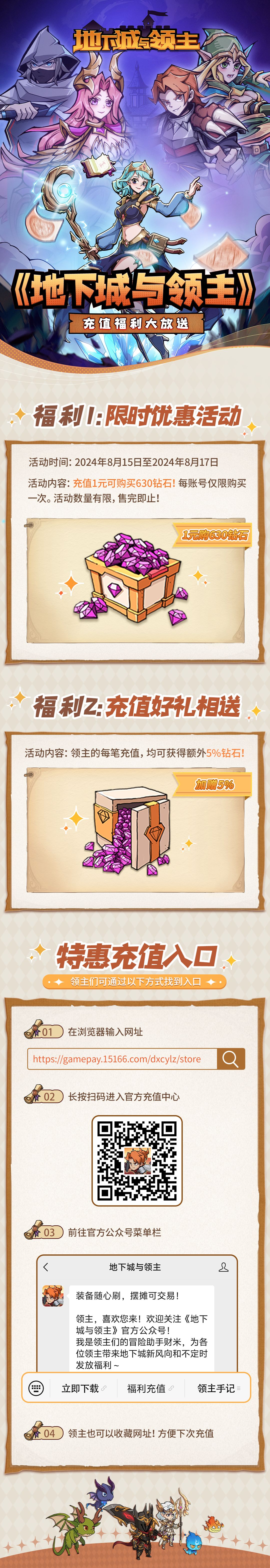 ✦关注《地下城与领主》官方微信公众号,点击[福利充值]菜单即可直达