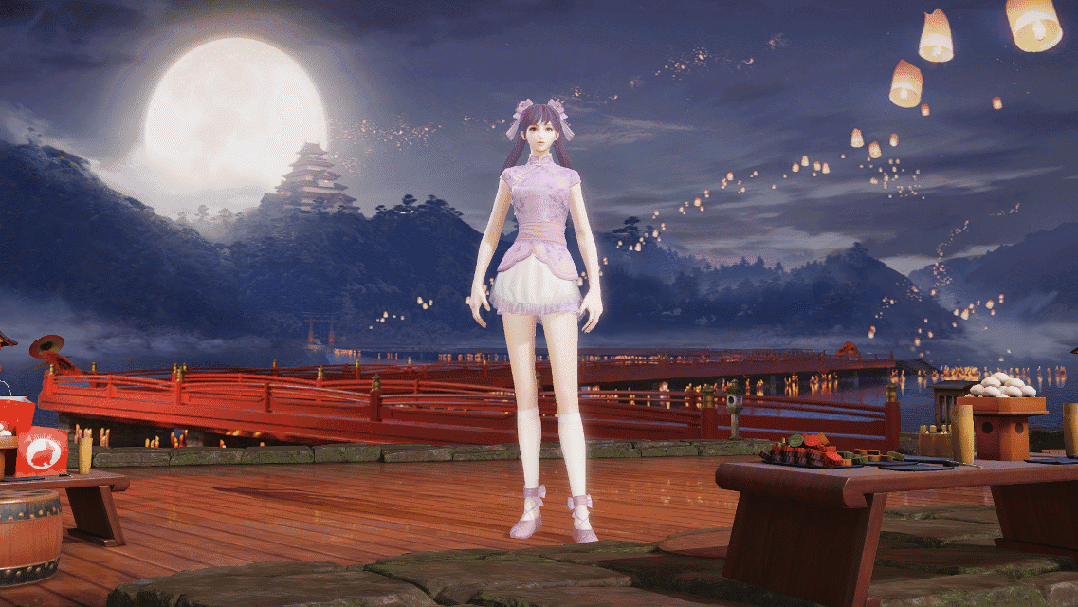 一身改良旗袍俏皮而又不失大方,衣服上的图案是清新素雅的水墨,脚上白丝和布鞋的搭配也别有一番风味,将中华娘的萌展现得淋漓尽致。