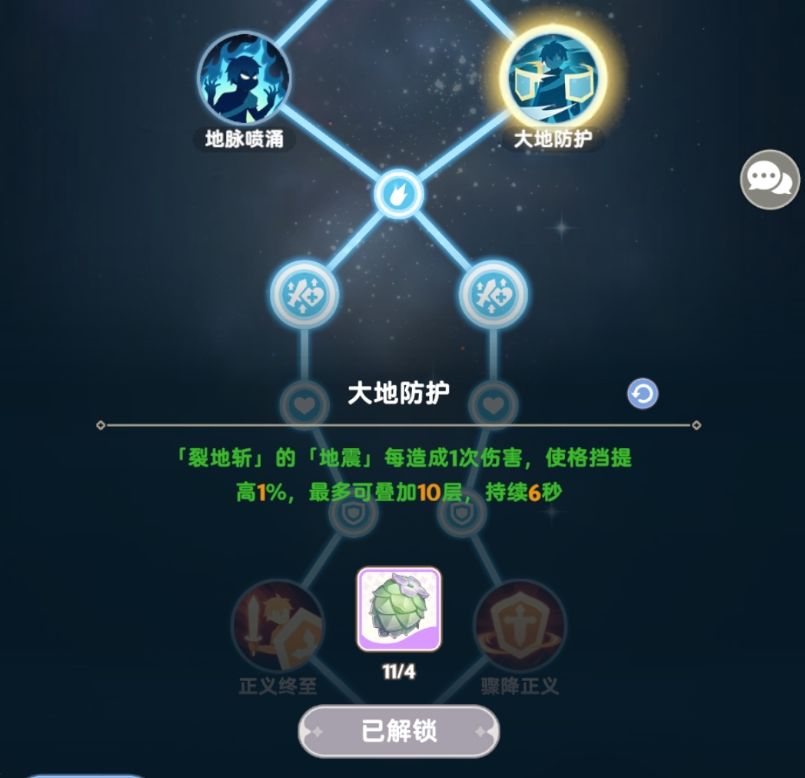 在这里,第一个战术技能可以替换【勇气战旗】或【守护】,我这里带裂地斩是为了触发天赋中10%格挡率的buff