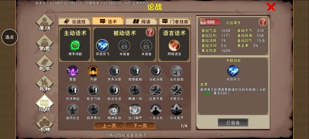 个人卡:俊辩有才(自带7点回气,不怕放不出技能)