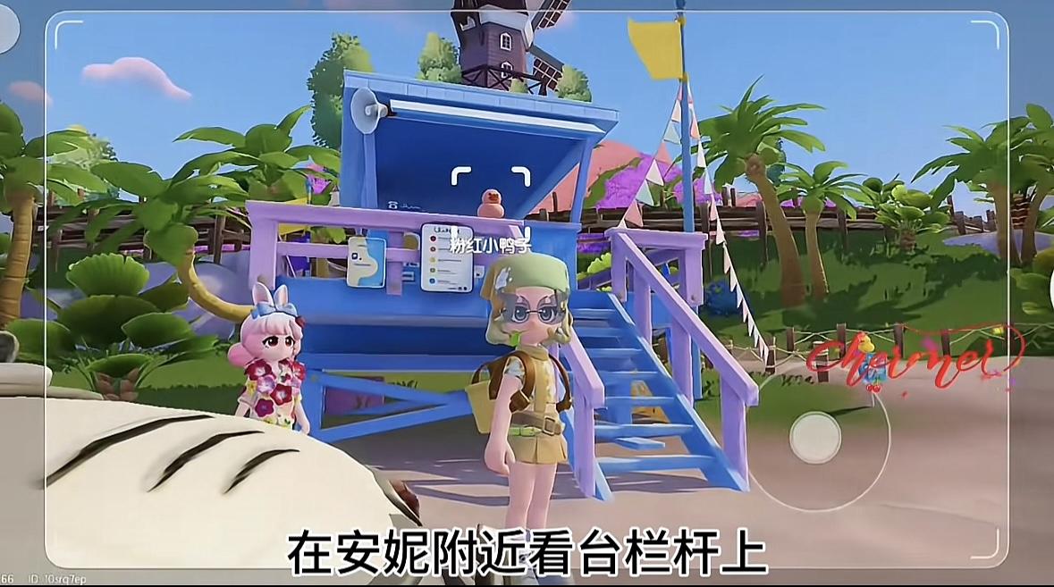 粉红色鸭子拍照任务位置:安妮附近看台栏杆上