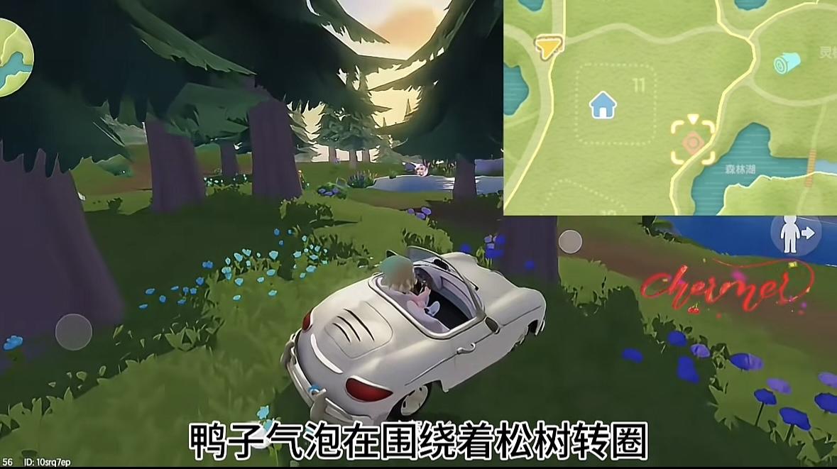 淡紫色鸭子家具摆件位置:森林湖附近松树旁