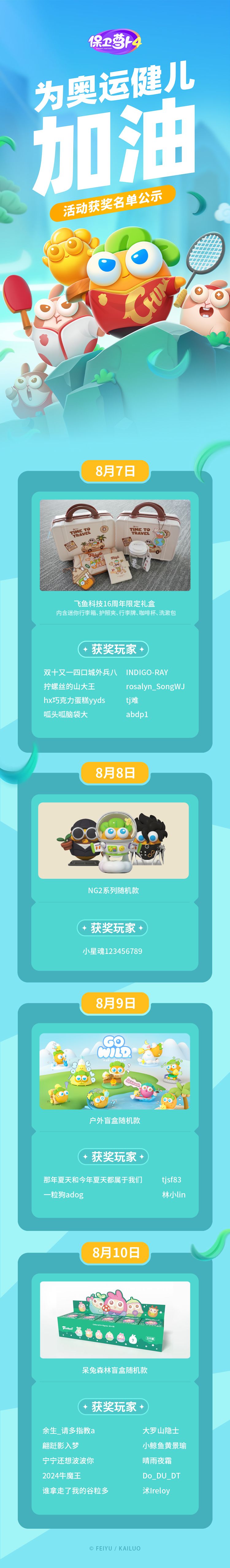 「 保卫萝卜4为奥运健儿加油」活动获奖名单来啦!