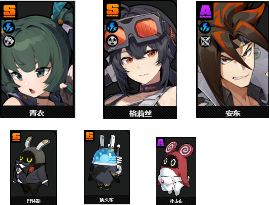 跟格莉丝组队的话,就用青衣,格莉丝,安东,邦布就用巴特勒布,插头布,扑击布